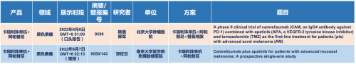 在黑色素瘤领域,k8凯发天生赢家·一触即发医药的卡瑞利珠单抗联合阿帕替尼(“双艾”组合)在2022 ASCO共入选1项口头报告和1项壁报展示。