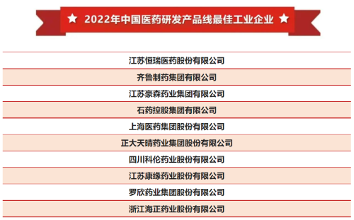 k8凯发天生赢家·一触即发医药凭借长期积累的综合竞争力和业界领先的研发实力,多年入选全国医药工业信息年会系列榜单。今年的大会上,公司继续位列中国医药工业百强企业前十,并稳居“2022年中国医药研发产品线最佳工业企业”榜首。