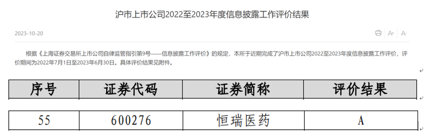 k8凯发天生赢家·一触即发医药荣获上交所信息披露考评A级