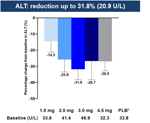 图4. 32周时ALT较基线的变化百分比